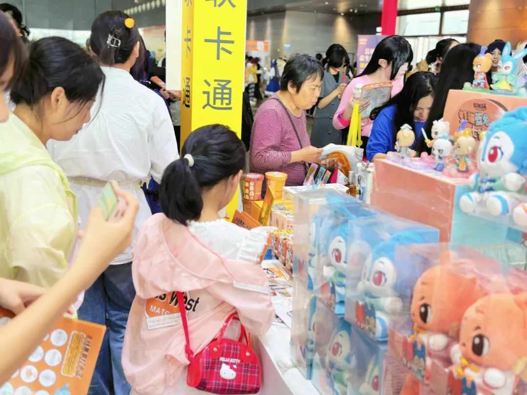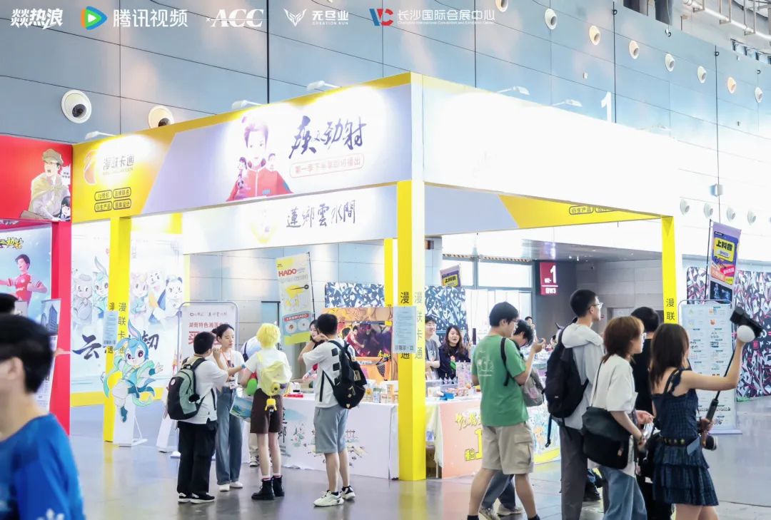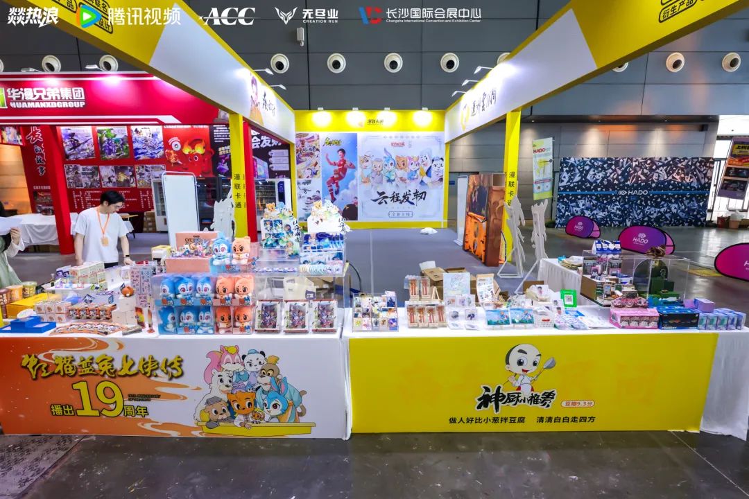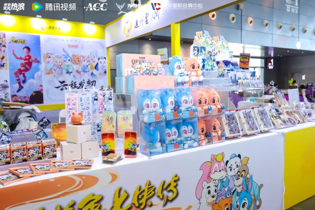 “动漫湘军”代表企业之一的漫联卡通也亮相于此次盛会。漫联卡通集中展示了《虹猫蓝兔》《疾风劲射》《神厨小福贵》《莲乡云水间》《笨狼》《开心智趣园》六大IP矩阵。《虹猫蓝兔》衍生品展区人气高涨,徽章、立牌、盲盒等产品吸引众多游客驻足选购。